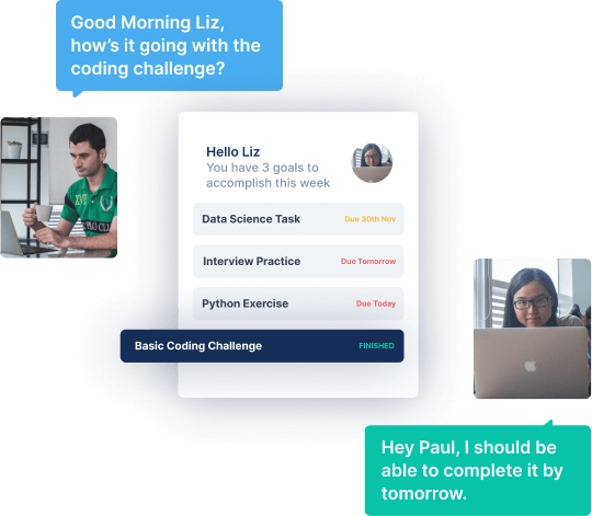 Your online mentor can elevate your career or be a shoulder to lean on. Get a personalized mentoring program, including curated study plans, regular check-ins, and unlimited actionable support. Be part of an online mentor community that spans across the globe.